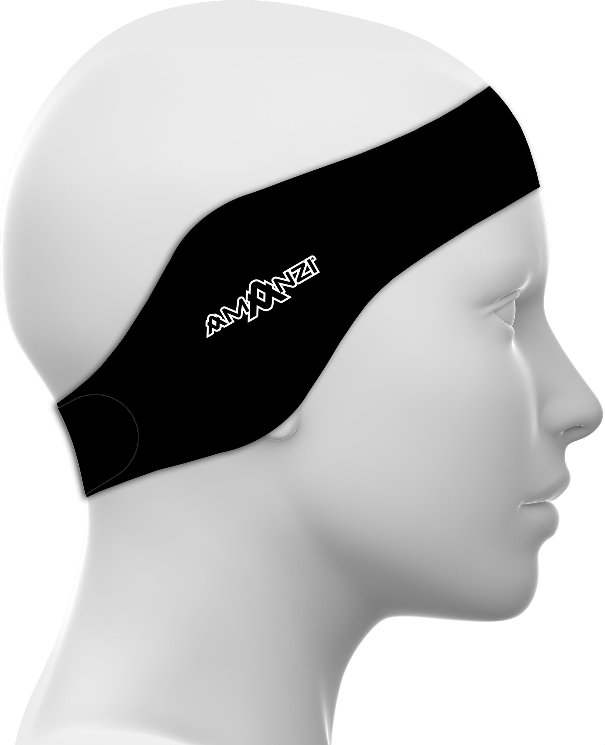 AMANZI Ear bands have been designed to cover and protect the ears while swimming. They are made of a non-slip neoprene to ensure they remain in place when swimming. The Ear Bands are adjustable to fit snugly around the head and are suitable for all ages. Ear bands are used to secure traditional ear plugs or ear putty in place. They are also used to keep the ears warm in cold aquatic environments.