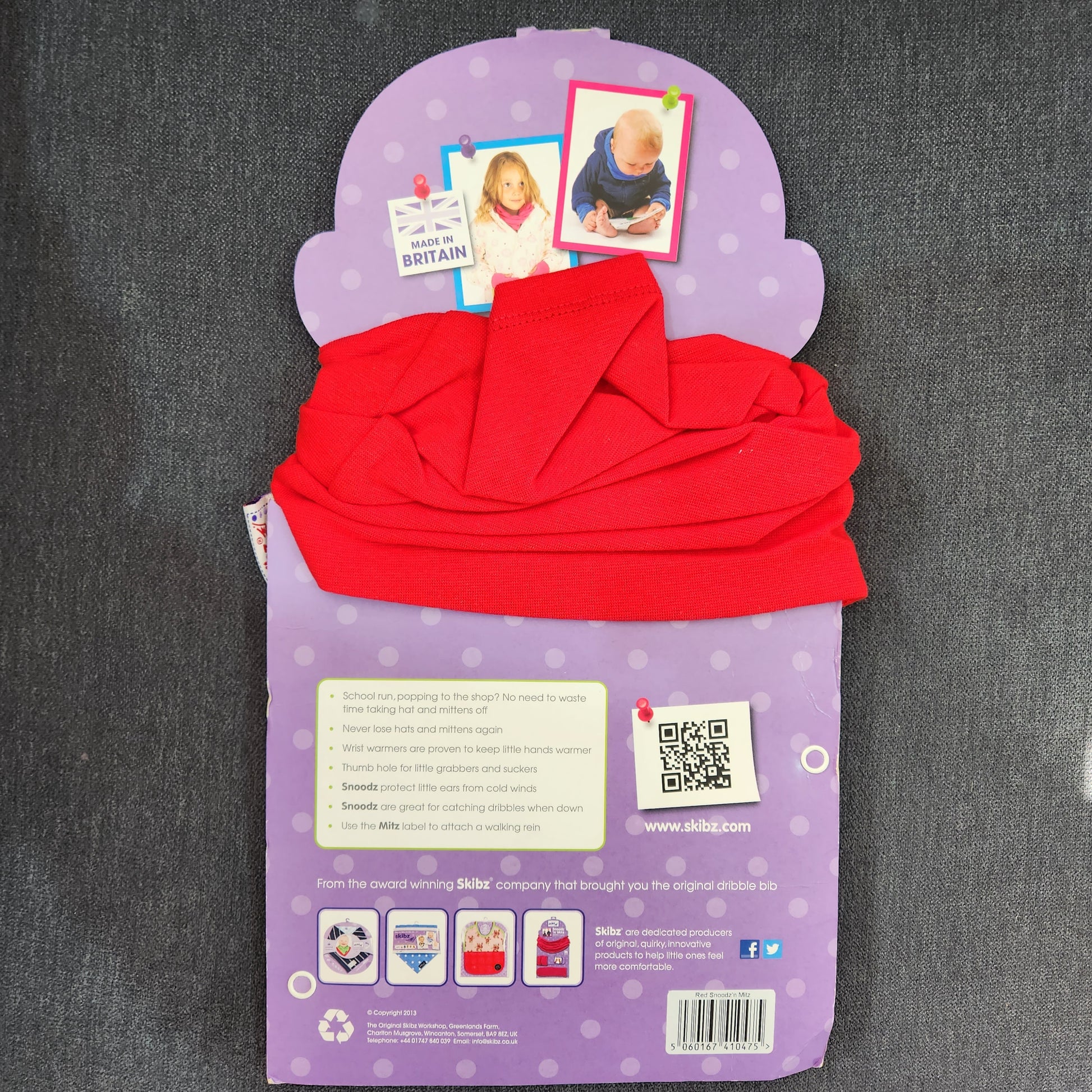 Keep your toddlers & kids warm and ready for play with this winter set including a snood/scarf that stays put and mittens that turn into wrist warmers! One size fits toddlers and young kids ages 6 months to 3 years.