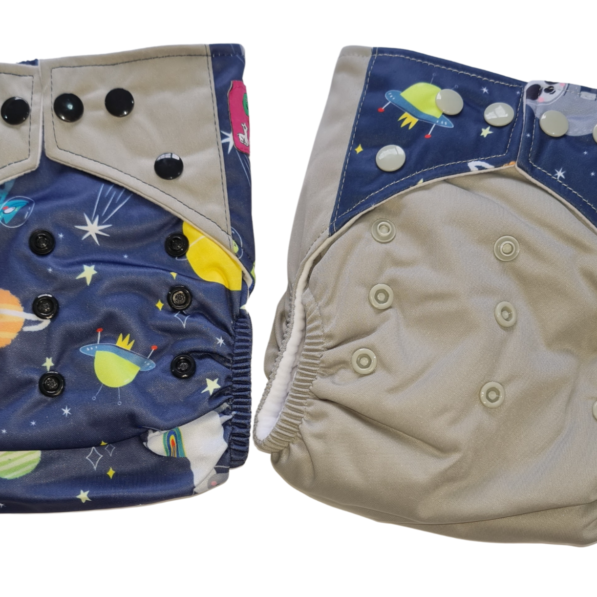 Our Binnie Premium Eco Friendly Cloth Nappies have a waterproof outer and double leakage gusset for maximum leakage support. They come in a twin pack, and each nappy has a removable microfibre insert inside. These nappies are OSFM (One Size Fits Most), fitting most babies from approx 3kg to 15kg. This makes them a budget friendly and eco-friendly option compared to disposable nappies.