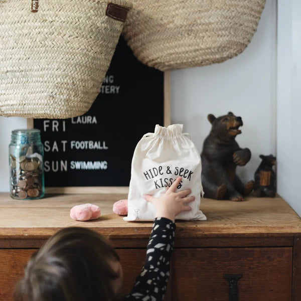 Perfect for imaginative children aged 1 - 6, this game from The Kiss Co, contains 10 soft little 'kisses' inside a natural cotton bag. Who doesn't love a game of hide and seek - your kids will love 'hunting' for kisses, or watching you find their hidden treasures! (and probably with little give-away giggles as you get closer!)