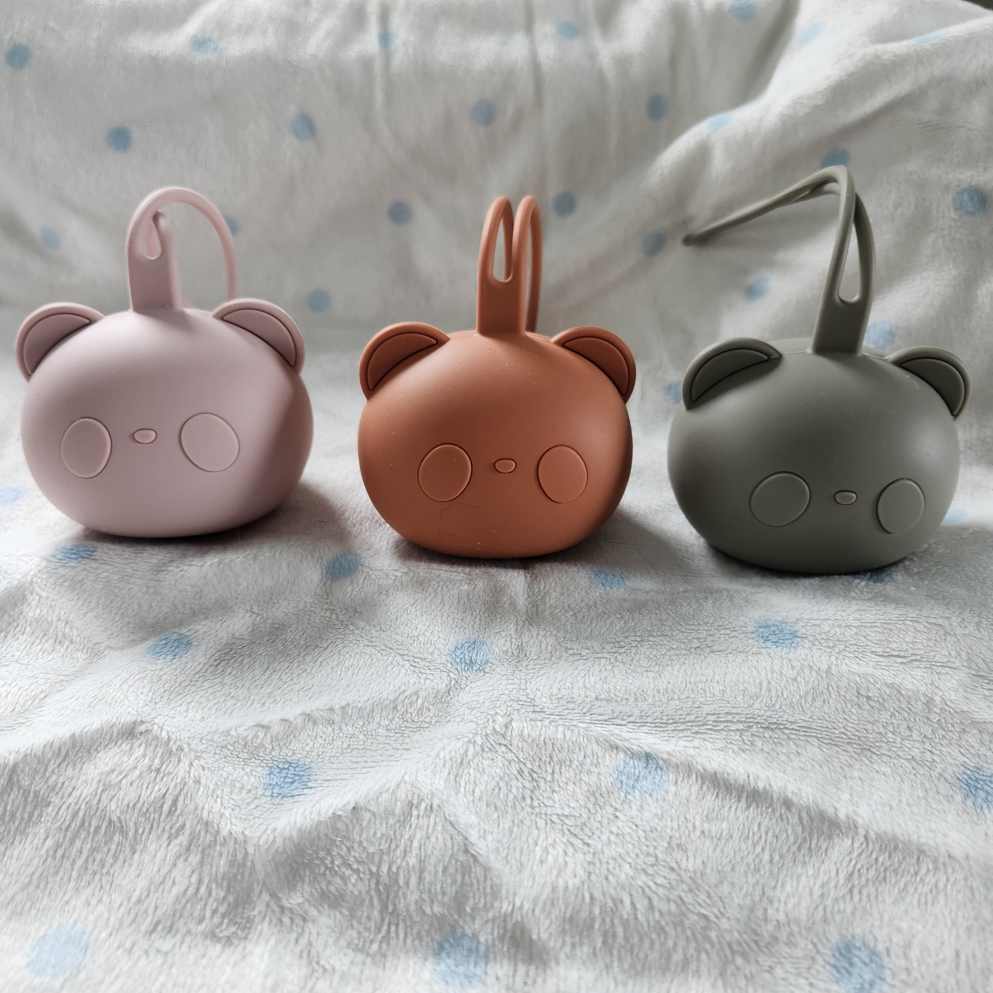 Flexible silicone dummy/pacifier holder that can be attached to prams, capsules, handbags and baby bags! Anywhere you may need a dummy within reach, in a safe and hygenic pocket.
