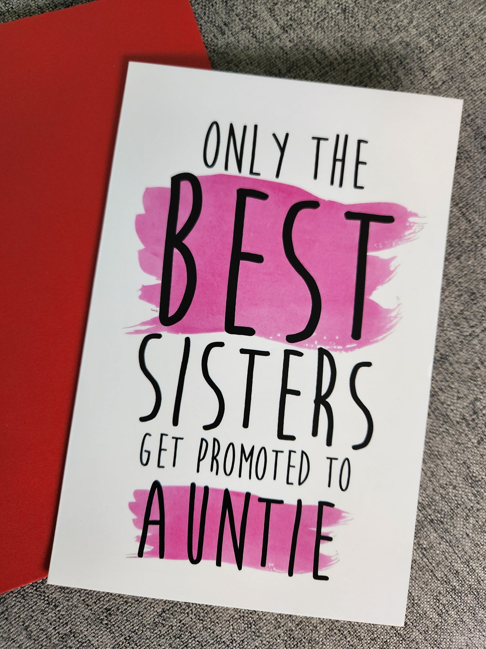 Celebrate your pregnancy with your loved ones and announce the exciting news that they're going to be an auntie! This special pregnancy announcement card is the perfect way to share the joy and create a treasured keepsake for your sister, sister-in-law, or close friends who are like sisters to you. Let them know they're loved and appreciated as they embark on their new role as an auntie. Blank inside for your own heart-felt message.