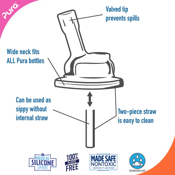 As with all products in the Kiki line, our straw module is 100% plastic-free unlike our competitors that use plastic components in their straw cups. With Pura, you can be sure you are always using the safest product for your child.