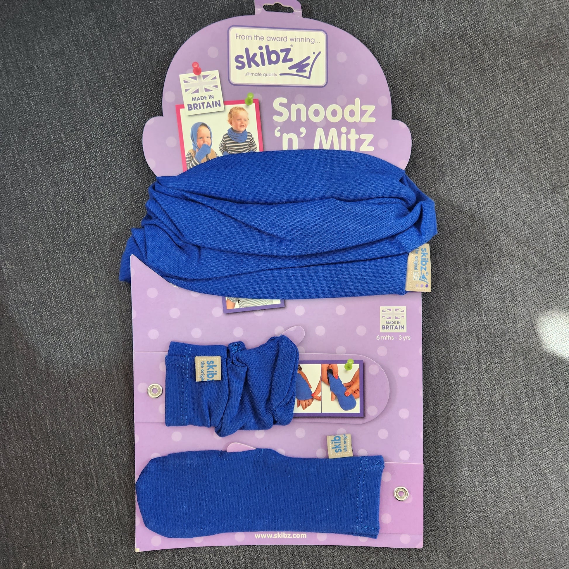 Keep your toddlers & kids warm and ready for play with this winter set including a snood/scarf that stays put and mittens that turn into wrist warmers! One size fits toddlers and young kids ages 6 months to 3 years.
