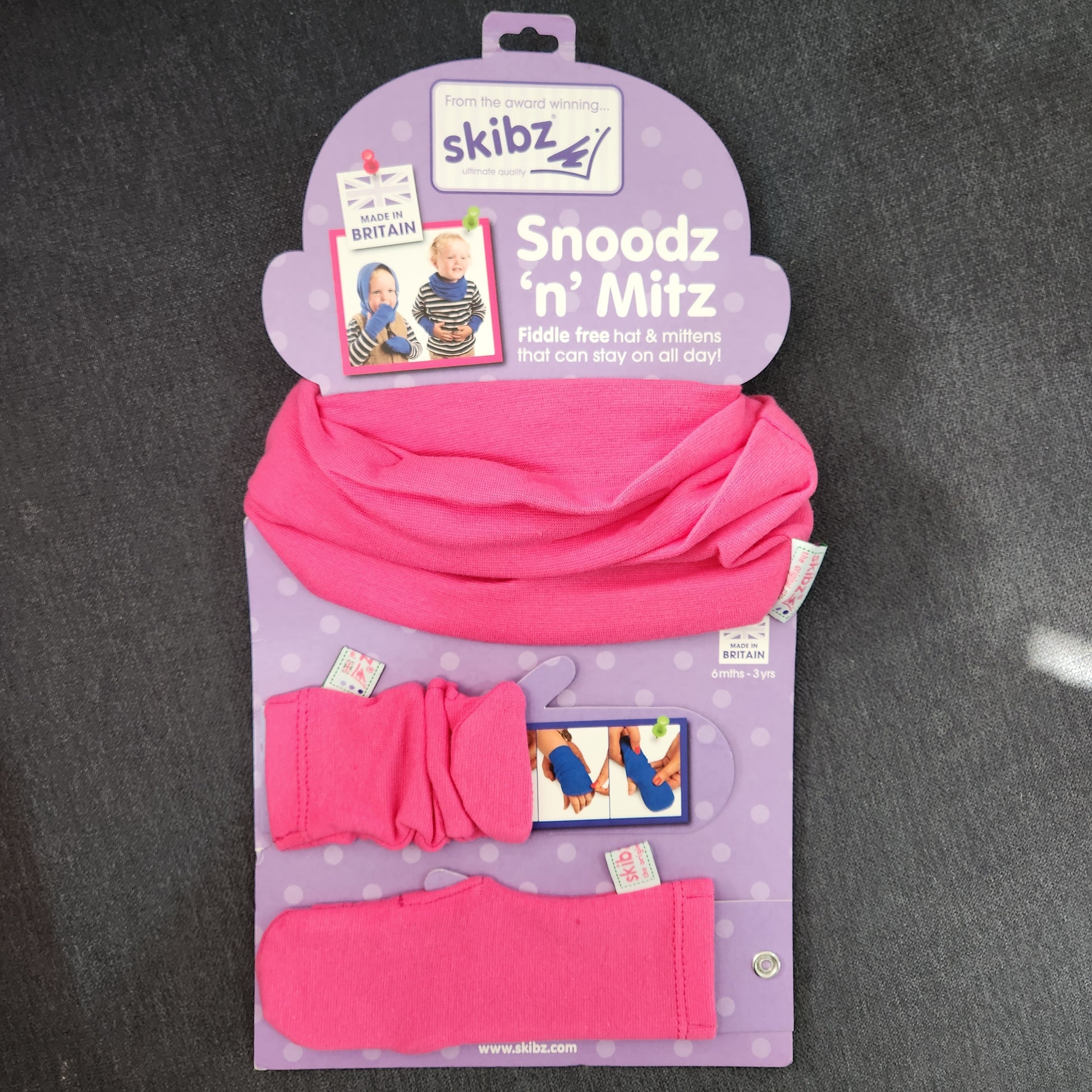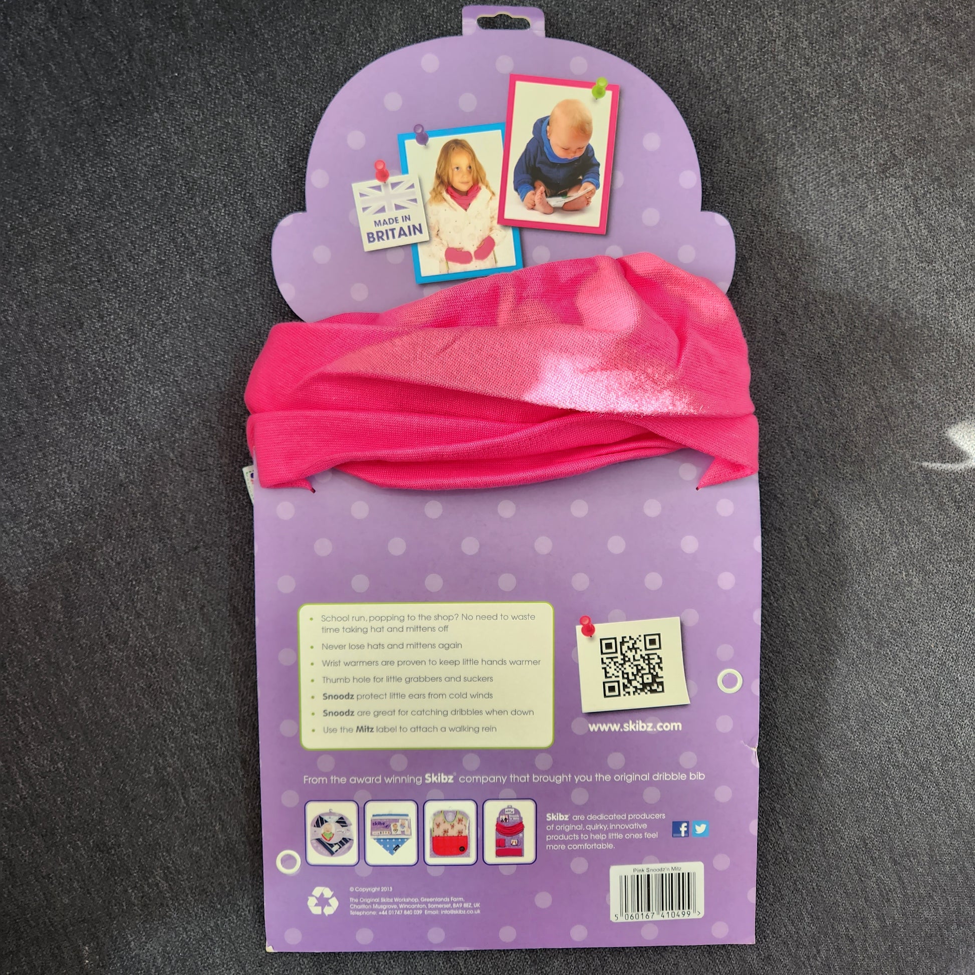 Keep your toddlers & kids warm and ready for play with this winter set including a snood/scarf that stays put and mittens that turn into wrist warmers! One size fits toddlers and young kids ages 6 months to 3 years.