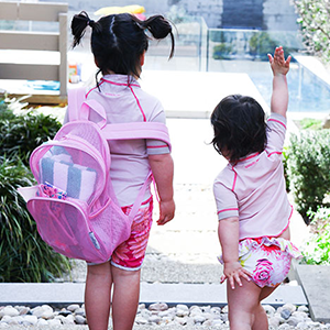 Grab this full swim kit, including a wet-friendly Mesh Backpack (pink), an Amanzi ear band (either Mermaid kisses OR Flutter designs), a 4-pack of pink ear plugs, and a small pink mesh zip pouch to guard your gear. Please note that the towel in the image is not included.
