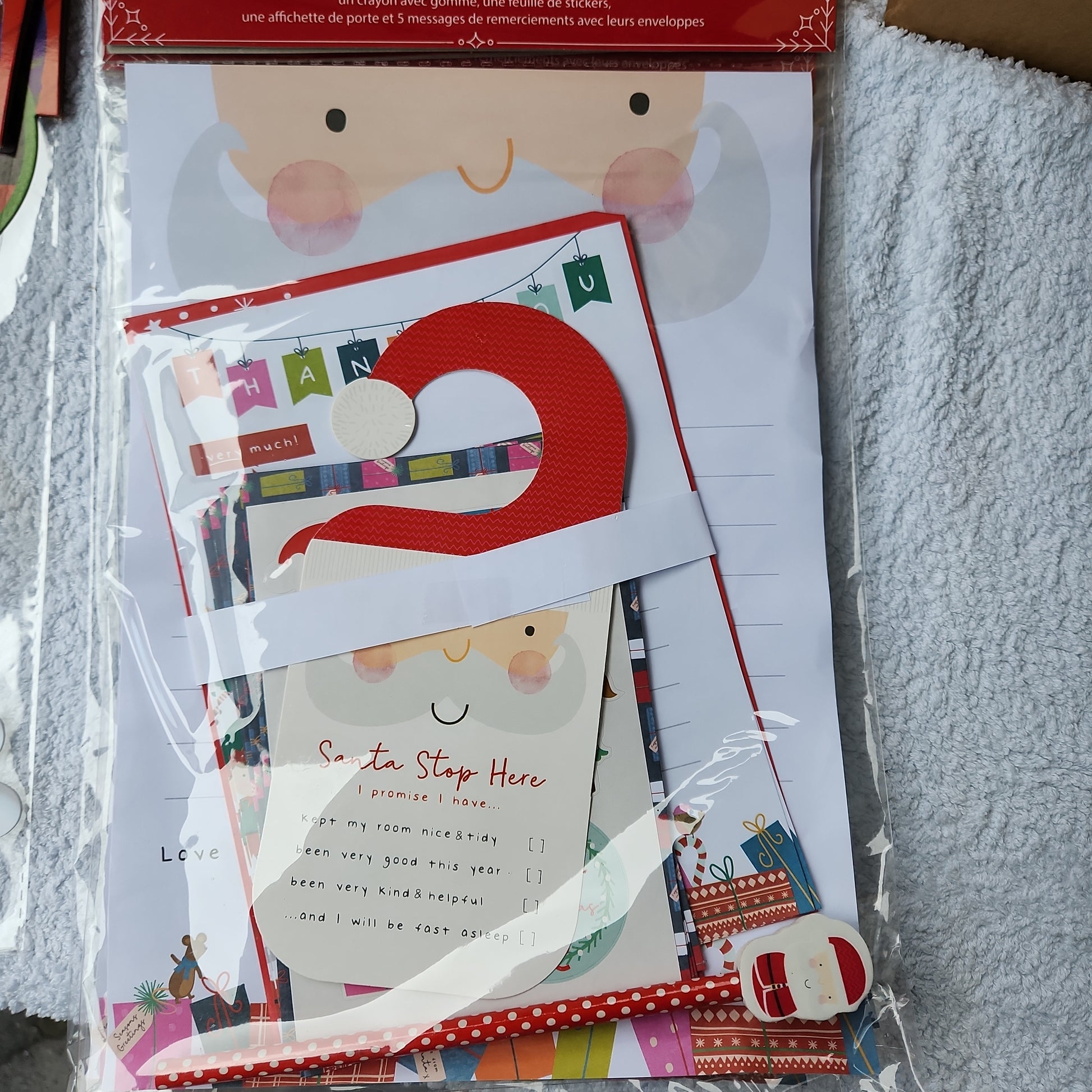 Cute Xmas pack with santa pencil, door hanger, stickers, santa letter and thank you notes!